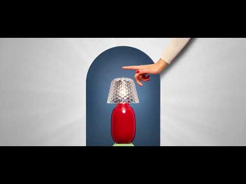 A bold alliance of ceramic and crystal, Baby Candy Light embodies Jaime Hayon's playful world of fantasy and humor. Cordless and rechargeable, this nomadic lamp can be placed anywhere to suit your mood and blends into any environment. The touch switch on the lampshade allows you choose the light intensity to create different ambiences. In brilliant red or matt white, it will illuminate moments shared with reflections of joy.
